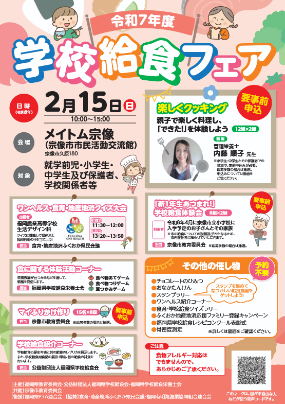 お知らせNEWS 一覧はこちら 2026年1月7日 【福岡県立社会教育総合センター】子育てWEB講座 「学童期編」(ふくおか子育てパーク) 2025年12月25日 福岡県内市町村の生涯学習推進体制等に関する情報を掲載しました。 2025年11月20日 【九州歴史資料館】令和7年度九歴講座(12月~3月)・九歴ゼミのご案内 2025年11月11日 【福岡県立社会教育総合センター】子育てWEB講座 「乳幼児期編」(ふくおか子育てパーク) 学ぶLEARN 学びをさがすSEARCH 最新!学びの新着情報 NEW! 開催日:2026年2月5日 福岡県SDGs推進フォーラム with Rethink PROJECT NEW! 開催日:2026年2月15日 楽しい!おいしい!学べる!「食」のイベント『学校給食フェア』 NEW! 開催日:2026年2月14日 【博多市民センター】花育キッズ NEW! 開催日:2026年2月15日 【飯塚市】福岡県アーバンスポーツ体験会 NEW! 開催日:2026年2月21日 【九州歴史資料館】ボランティア自主研究交流会 NEW! 開催日:2026年2月27日 【九州歴史資料館】第7回夕べのギャラリートーク特集展示「仏像入門-仏像の種類・技法・修理-」 もっと見る 紹介コーナー(活動・講座) レポート 学ぶ 開催日:2025年5月11日 【(社福)福岡県聴覚障害者協会災害対策部】2025年度聴覚障害者に関する災害フォーラム レポート 活かす 開催日:2020年4月1日 ~ 2021年3月31日 学習支援ボランティア(福岡県学習支援ボランティア人材バンク) もっと見る キーワードでさがす サイト内検索 検索 地域でさがす 地域を選択してください。 福岡 北九州 筑後 筑豊 福岡県全域 オンライン学習 地図からさがす 福岡地域 北九州地域 筑後地域 筑豊地域 日付でさがす 2006年03月 日 月 火 水 木 金 土 12345678910111213141516171819202122232425262728293031 分野でさがす 分野を選択してください。 文化・芸術・スポーツ 仕事・スキルアップ 保健・医療・福祉 子ども・子育て ICT・科学技術・産業 教育 自然・環境・農業 まちづくり・暮らし 国際交流・多文化 安全・防災 男女共同参画 障がい者のスポーツ・文化活動 シニア向け リカレント教育(学び直し) 公開講座 その他 この内容で検索する 活かすUTILIZATION 活動情報ACTIVITY 医療・福祉 子ども 文化・芸術・スポーツ まちづくり 教育 環境保全 国際協力 観光 防災・災害支援 その他 もっと見る お役立ち情報USEFUL リカレント教育 公開講座 オンライン学習 学校・団体・機関 講師情報 各種施設 市町村窓口 (生涯学習担当課)