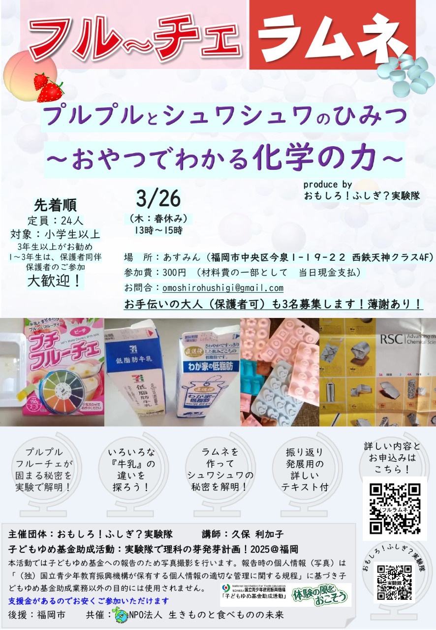 プルプルとシュワシュワのひみつ〜おやつでわかる化学の力〜(実験教室) :フルーチェとラムネで化学の力を体験!