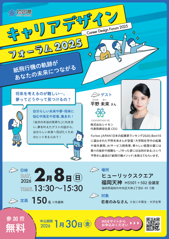 未来の自分を考える「キャリアデザインフォーラム2025」~AI起業家・平野未来(ひらのみく)氏が語る、夢を叶える「自分らしいキャリア」の探し方~