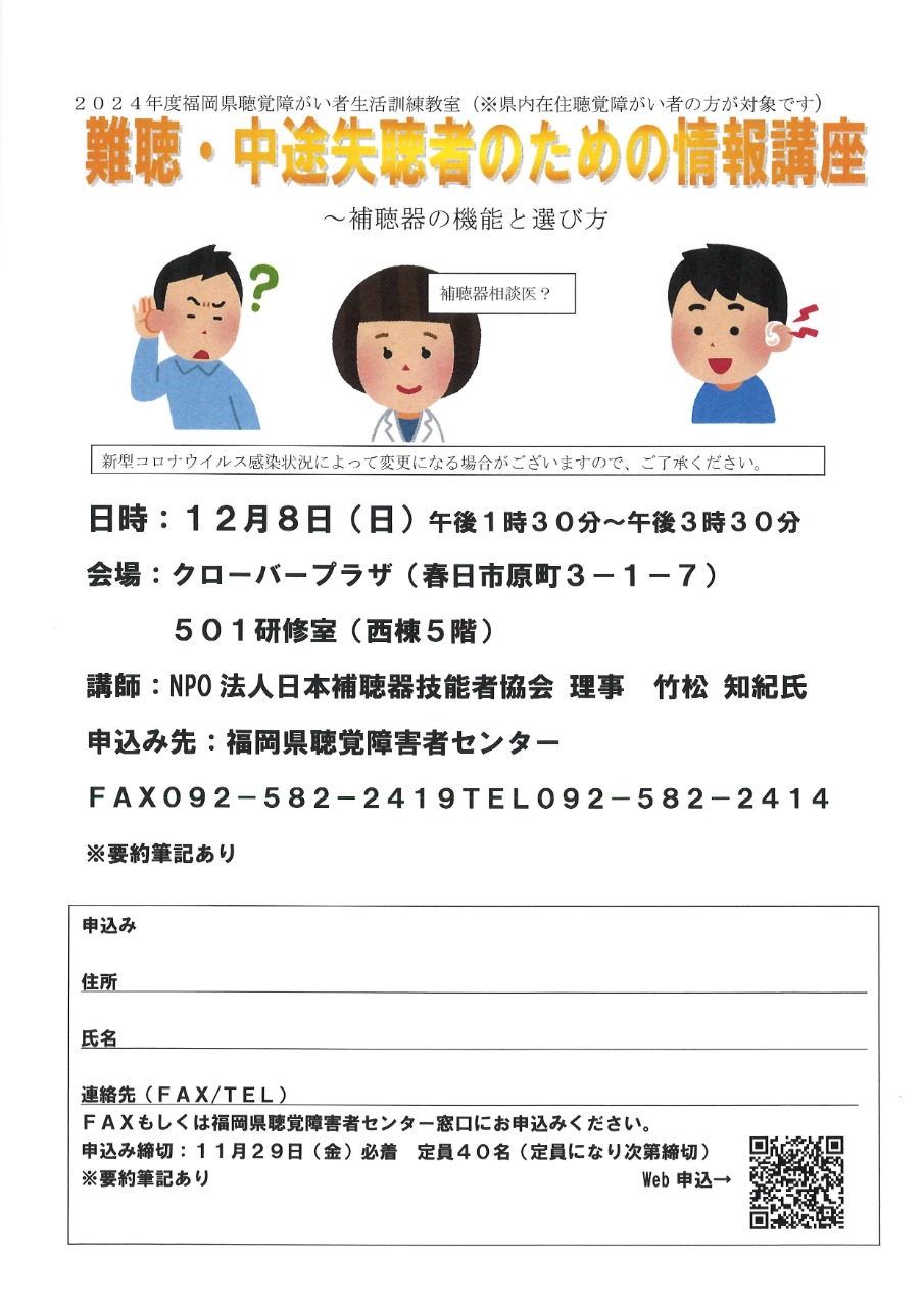 【福岡県聴覚障害者センター】第7回福岡県聴覚障害者生活訓練教室(クローバープラザ)