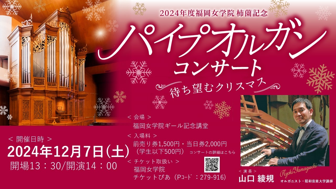 【福岡女学院】2024年度福岡女学院柿園記念 パイプオルガンコンサート