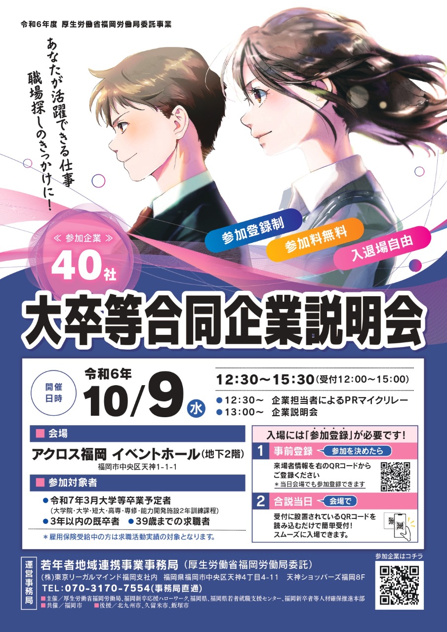 【厚生労働省福岡労働局】大卒等合同企業説明会