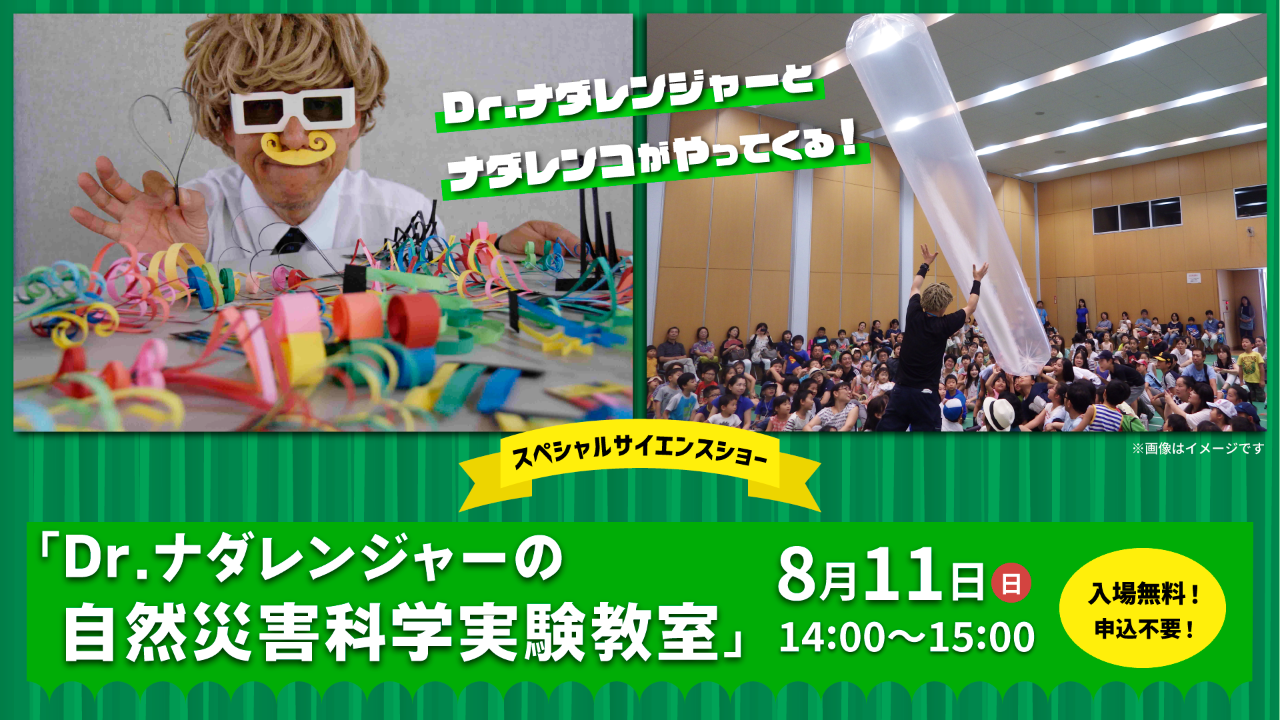 【福岡市科学館】8月11日(日曜日) スペシャルサイエンスショー「Dr.ナダレンジャーの自然災害科学実験教室」