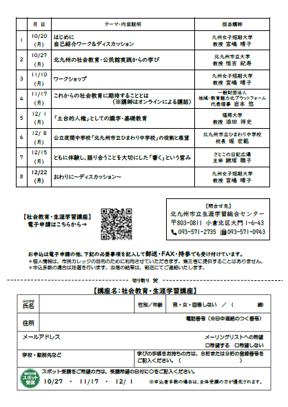 北九州市民カレッジ「社会教育・生涯学習講座」