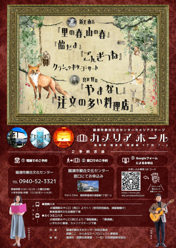 【福津市複合文化センター共同企業体】朗読とギターで奏でる物語~新美南吉と、宮沢賢治。~(カメリアホール)