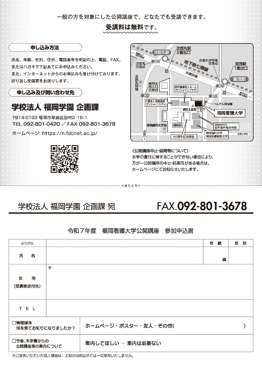 主催者 福岡歯科大学・福岡看護大学・福岡医療短期大学 地域連携センター、福岡看護大学社会貢献推進委員会