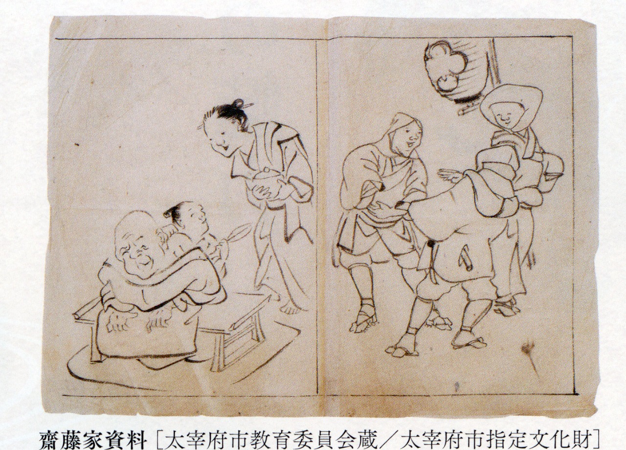 齋藤秋圃は京都出身で、大阪新町では画技にたけた幇間を務めていました。大坂時代には、新町遊郭の様々な日常生活を巧妙に、和やかな画風で描きあげた『葵氏艶譜』を刊行しています。1805年に秋月藩第8代藩主黒田長舒に召し出され、お抱え絵師に転じました。隠居後は太宰府に住んで町絵師となり、91歳で没するまで自由な立場で盛んに絵筆を振るいました。江戸時代の筑前を代表する絵師です。齋藤家に残る文書資料から見た齋藤秋圃についてお話します。