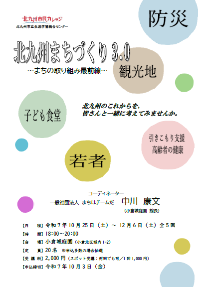 | 特記事項 | 定員に達した場合は応募締切をしますので、あらかじめご了承ください。 |