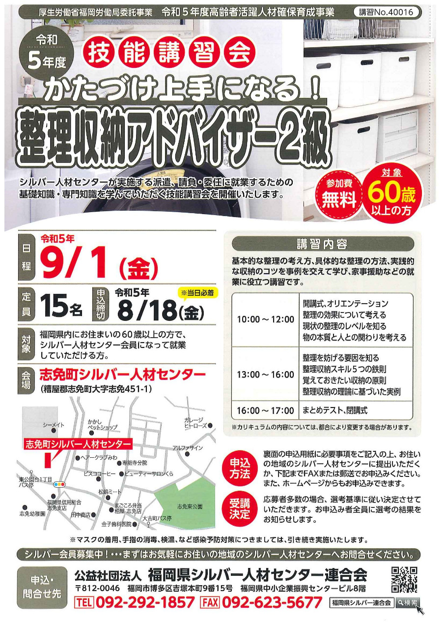 【技能講習】整理収納アドバイザー2級(志免町)
