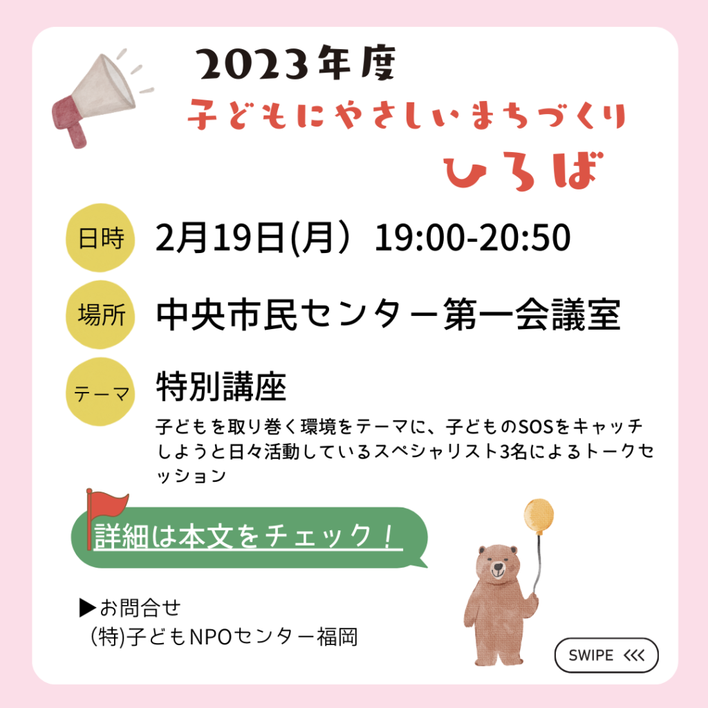 【(特)子どもNPOセンター福岡】第5回こまちひろば 特別講座 ~トークセッション~(中央市民センター)