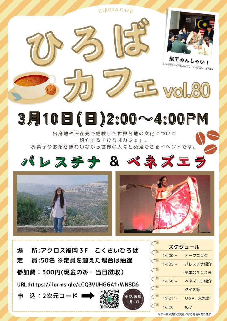 【(公財)福岡県国際交流センター】ひろばカフェvol.80 パレスチナ&ベネズエラ(アクロス福岡)