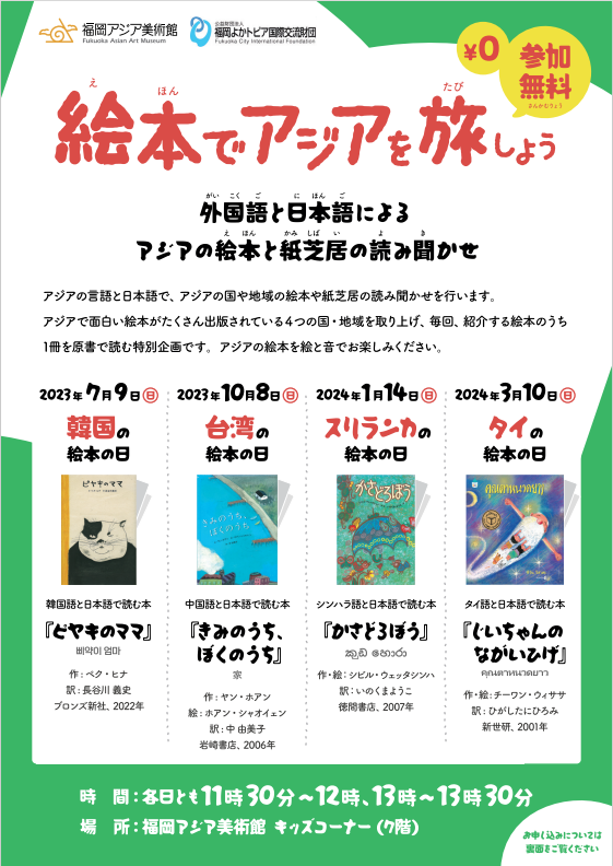【福岡アジア美術館】絵本でアジアを旅しよう ~外国語と日本語による アジアの絵本と紙芝居の読み聞かせ~(タイの絵本の日)