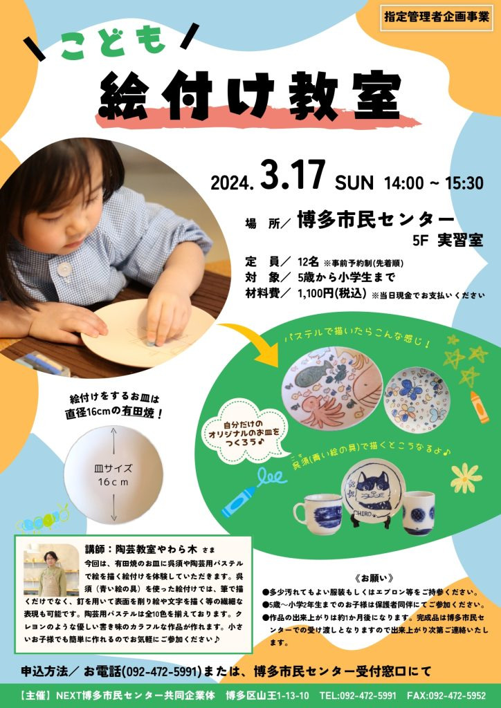 【NEXT博多市民センター共同企業体】こども絵付け教室(博多市民センター)