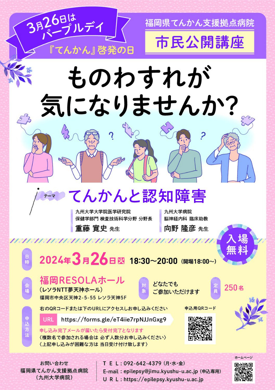 【九州大学病院】市民公開講座「てんかんと認知障害」(福岡RESOLAホール)