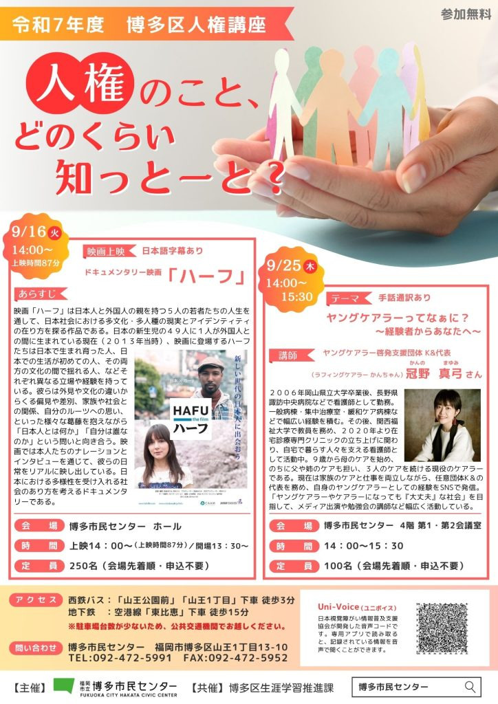 【博多市民センター】令和7年度博多区人権講座