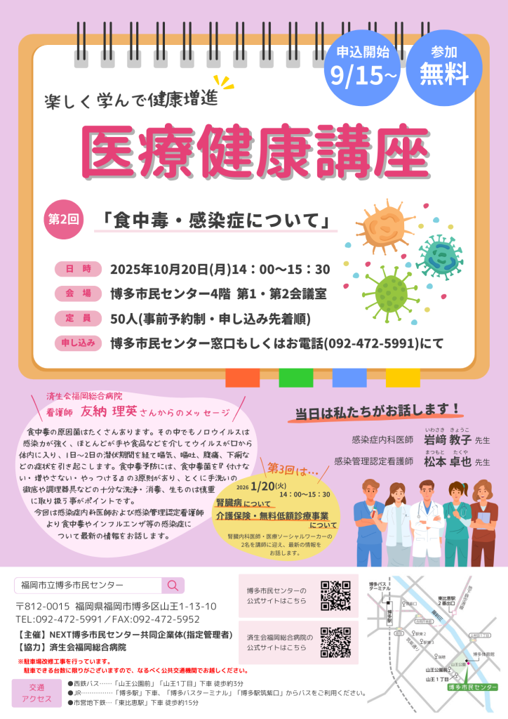 【博多市民センター】医療健康講座 第2回「食中毒・感染症について」