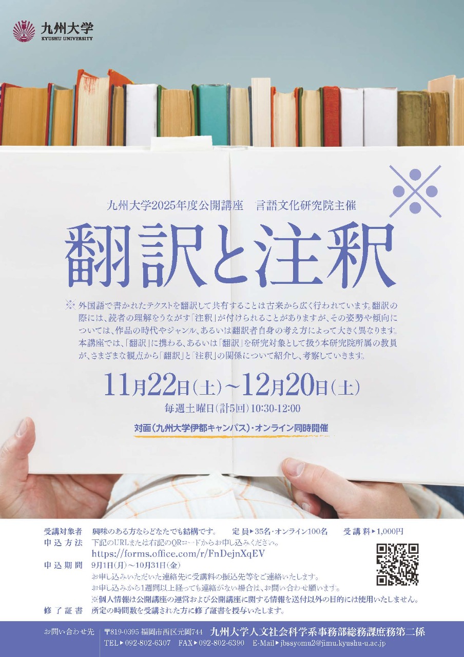 令和7年度言語文化研究院公開講座「翻訳と注釈」