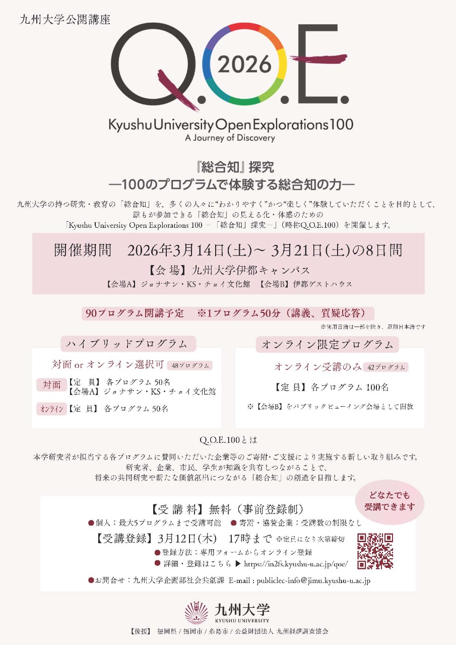 九州大学公開講座「Kyushu University Open Explorations 100-「総合知」探究-」